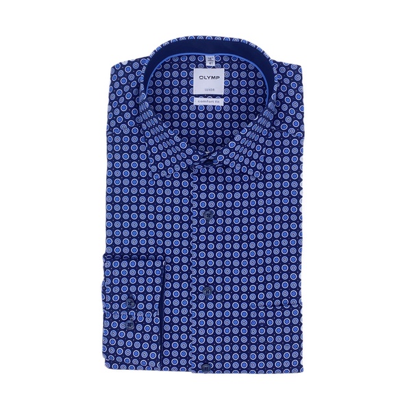Das klassische Hemd von OLYMP aus der Luxor Serie ist leicht tailliert und erzeugt dadurch eine schlanke Silhouette. Das kreisrunde Muster sorgt für einen modernen Look.