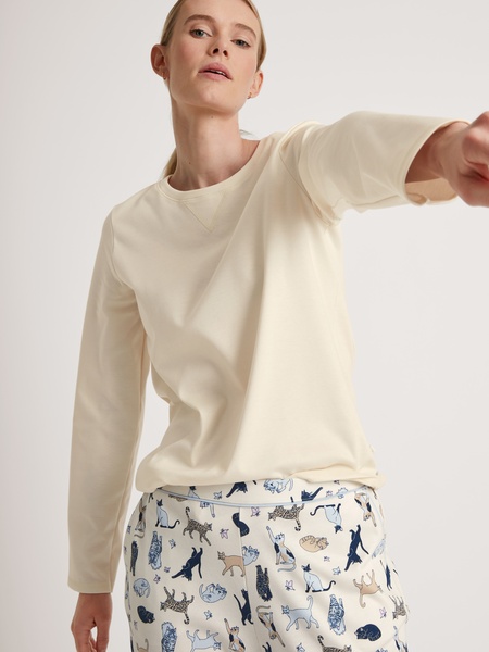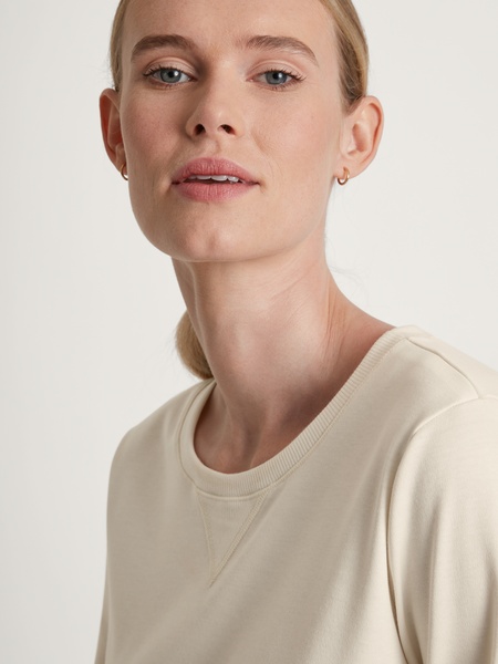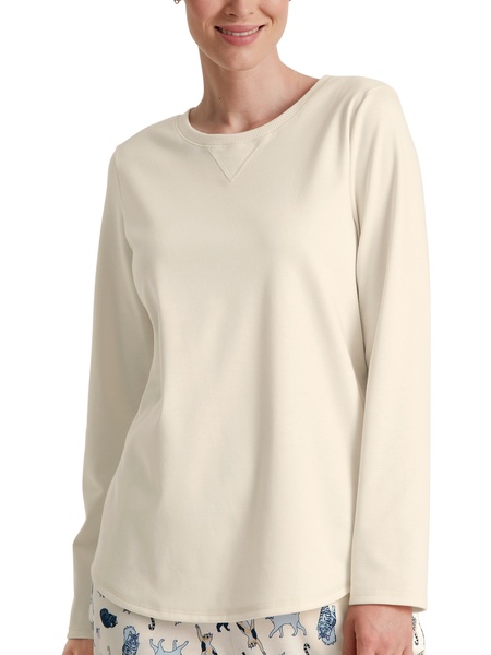Dieses Shirt besteht aus reiner Baumwolle und bietet maximalen Komfort bei gleichzeitig atmungsaktiver, hautfreundlicher Qualität. Das schwere Interlock-Gewebe hält angenehm warm, bleibt formstabil und langlebig – perfekt für kühle Tage.