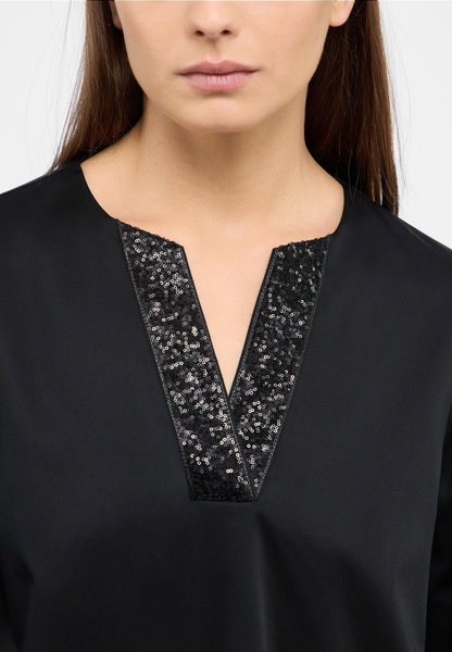 Die opulenten Volumenärmel verleihen der Bluse einen besonderen Charakter. Durch das feine Satingewebe aus 95% Baumwolle und 5% Elasthan (STRETCH) ist ein erstklassiger Tragekomfort garantiert. Modernität und Eleganz verschmelzen im Design dieser bügelleichten LOOSE FIT Tunika und begeistern jede modeaffine Frau.