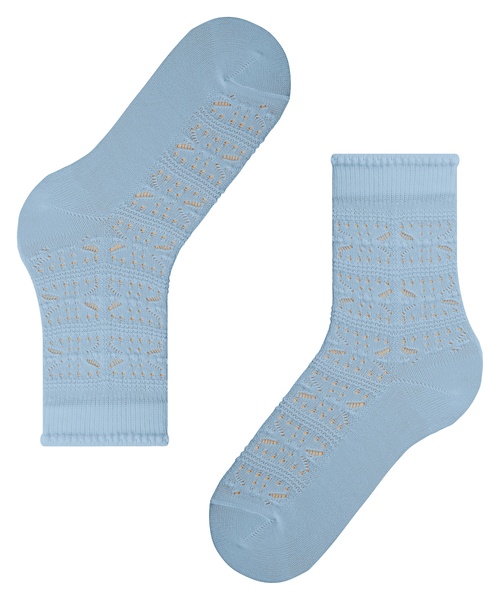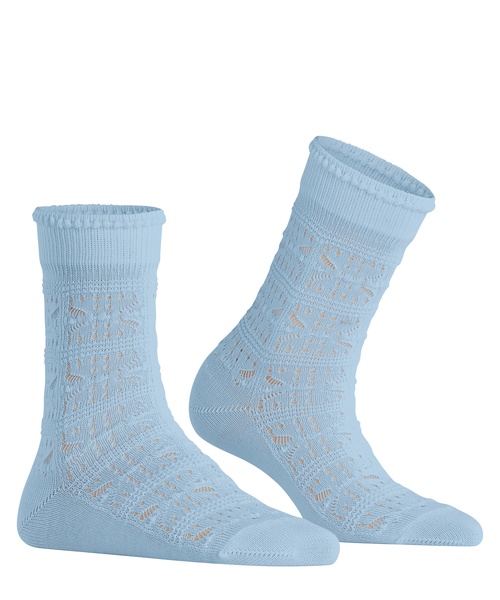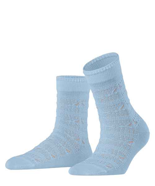 Dieses Modell zeichnet sich durch die leichte Ajour-Struktur in modern interpretierter Handcrafted-Optik aus. Die verwendete Viskose sorgt für ein angenehmes Tragegefühl mit hohem Komfort. Das Abschlussbündchen ist leicht gerüscht, wodurch den Socken ein elegant-femininer Look verliehen wird.