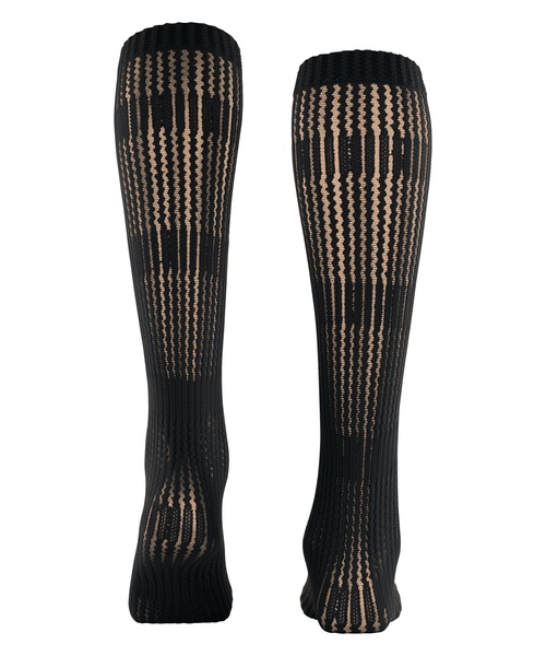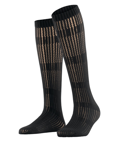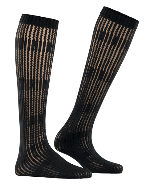 Modische Feinkniestrümpfe, die durch ihre transparenten Einsätze ein echter Hingucker sind. Die vertikalen Plattierungen finden ihre Inspiration in Zweigen auf einem transparenten Relief. Besonders gut kombinierbar zu weiten Hosen, Culottes und Midi-Röcken. Hochwertig verarbeitet im 3D-Strickverfahren und durch die perfekte FALKE-Passform, bieten die Kniestrümpfe ein exklusives Tragegefühl.