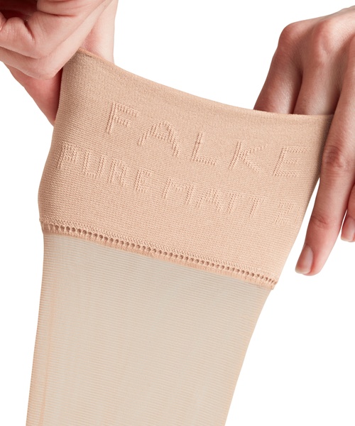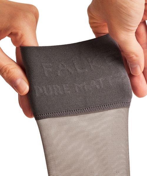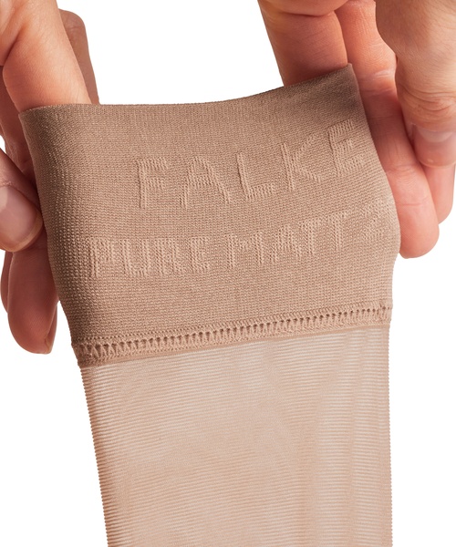 Matte, transparente Feinkniestrümpfe aus nachhaltiger FALKE − WE CARE − Garnkomposition für ebenmäßig schöne Beine. Bei dem samtig feinen Material handelt es sich um mehrheitlich recyceltes Polyamid aus Produktionsresten. Das Recycling erfolgt in einem umweltschonenden mechanischen Verfahren ohne Einsatz von Chemikalien. Hergestellt ohne den Zusatz von Silikonweichmachern, überzeugen die Pure Matt 20 Kniestrümpfe nicht nur durch ihre elegante und matte Optik: Ein angenehmes Sensitive Top Bündchen sowie Fußspitzen mit feinster Softnaht sorgen für einen angenehmen, druckfreien Sitz. Der perfekte Begleiter im Alltag.