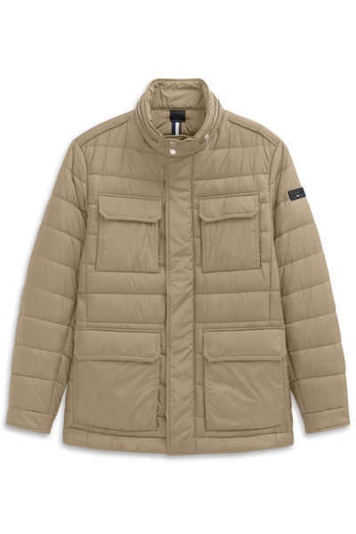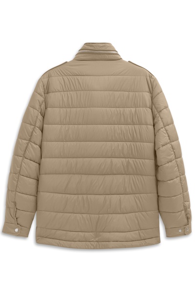 Leichte Männerjacke in Steppoptik mit Sorona Füllung. Stehkragen mit Reißverschlussdetail. Vordere Kante mit Reißverschluss und verdeckter Knopfleiste. Schulterdetails sowie weitenverstellbare Manschetten. Aufgesetzte 2-Wege Pattentaschen an Brust und Seite. Tunnelzug im Rücken von Seitennaht zu Seitennaht. Innen ein ganzes Futter mit Innentaschen und Flagdetails. Der Artikel ist lightweight und pflegeleicht beim Reisen.