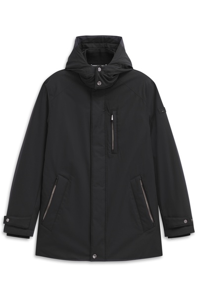 Sportlicher Parka mit Stehkragen und Sorona-Füllung. Zusätzlicher Strick im Kragen und eine abtrennbare Kapuze. Verdeckte Druckerleiste und Reißverschluss in der vorderen Kante. Leistentaschen mit Reißverschluss an der Brust sowie an der Seite. Armriegel als Ärmelabschluss und innenliegende Ärmelstulpe. Innen ein ganzes Futter mit Flexcity-Einsätzen und Innentaschen. Der Artikel mit stretch-Funktion ist wasserfest (3000mmH20) und ist PFC frei.