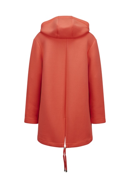 Dieser lässige Parka im modernen A-Shape überzeugt durch seine entspannte, leicht oversized Passform und das angenehm weiche Scuba-Jersey-Material. Die graue Außenseite wird durch eine kontrastierende Warenrückseite in Creme ergänzt und verleiht dem Design eine besondere Tiefe.
