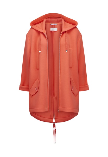 Die angeschnittene Kapuze mit Tunnelzug sowie der ebenfalls regulierbare Saum sorgen für flexible Styling- und Tragemöglichkeiten. Der hinten verlängerte Saum mit Schlitz und Kordel in der hinteren Mitte unterstreicht den modernen, urbanen Look und bietet zusätzlichen Komfort in der Bewegung.