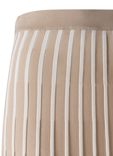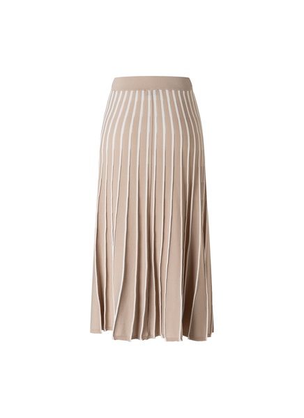 Dieser schwingende Faltenrock besticht durch eine fließende Silhouette und moderne, feminine Eleganz. Die Viskosemischung sorgt für einen weich fallenden Stoff, eine angenehm glatte Haptik und hohen Tragekomfort. Fein gesetzte Rippen in kontrastierender Farbe verleihen Struktur und eine ruhige, grafische Präzision. Der flexible Bund garantiert zusätzlichen Komfort und eine optimale Passform. Im Regular Fit umspielt der Rock die Figur ausgewogen und bewegt sich bei jedem Schritt mühelos. Solo getragen oder kombiniert mit dem passenden Pullunder entsteht ein harmonisch femininer, zeitgemäßer Look.