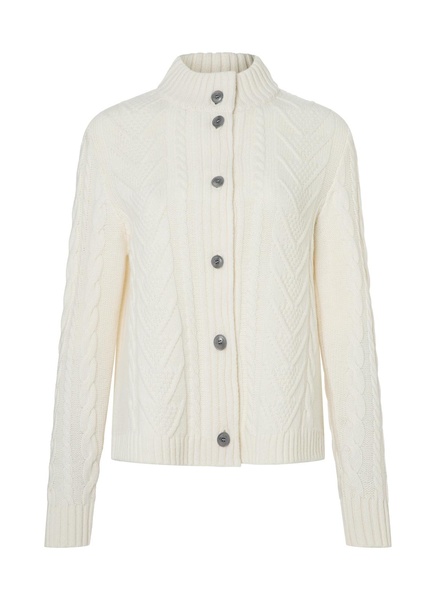 Diese Strickjacke der Marke "maerz" überzeugt sowohl mit ihrem beqeumen Stoff als auch dem anschmiegsamen Schnitt. An der Vorderseite besitzt sie farblich hervorgehobene Knöpfe, die bis zum Hals geschlossen werden können, sodass sie auch an kühlen Tagen zuverlässig warm hält. Das eindrucksvolle Muster macht diese Jacke zu einem ganz besonderen Kleidungsstück, das sich zu vielfältigen Anlässen tragen lässt und eine bemerkenswerte Eleganz ausstrahlt.