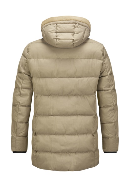 Dieser hochwertige Steppparka überzeugt durch eine neu entwickelte Stoffmischung aus Polyester, Viskose und Wolle, die mit ihrem edlen Look, wasserabweisenden Eigenschaften und Atmungsaktivität begeistert. Der 10 % Wollanteil verleiht dem Material eine besonders wertige Haptik.