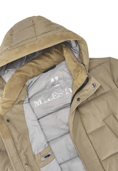 Besondere Akzente setzt das Kontrastmaterial aus softem Microvelours am Innenkragen, Kinnschutz, Kapuze und an der Rückseite der Pattentaschen. Die abtrennbare, gesteppte Kapuze mit Reißverschluss und Tunnelzug sorgt für flexible Tragemöglichkeiten.