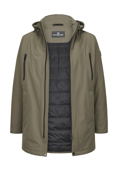 Die abtrennbare Kapuze mit Logo-Print und der hochabschließende Kragen schützen vor Wind und Wetter. Praktische Details wie die Heat-Pressed Seitentaschen, Brusttaschen mit Waterproof-Reißverschluss, 2-Wege-Frontreißverschluss und zwei Innentaschen mit Funktionsprint bieten vielseitigen Stauraum, ohne den minimalistischen Look zu stören. Das gesteppt gefütterte Innenmaterial mit Neon-Akzenten setzt dezente Akzente.