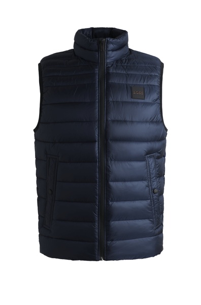 Wasserabweisende BOSS Weste mit schmaler Passform. Der Layer mit verschiedenen Absteppungen ist mit charakteristischen Details wie einem Logo-Aufnäher versehen. Dieses Produkt wurde mit recyceltem Polyamid aus Materialabfällen und gebrauchten Stoffresten oder industriellen Fischernetzen hergestellt. Durch die Verwendung von recycelten Materialien werden kostbare Ressourcen gespart.