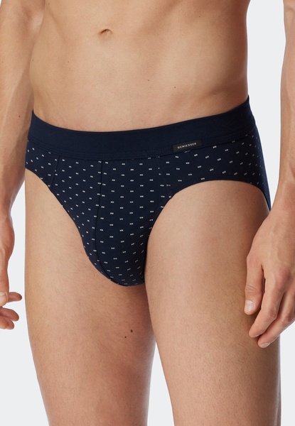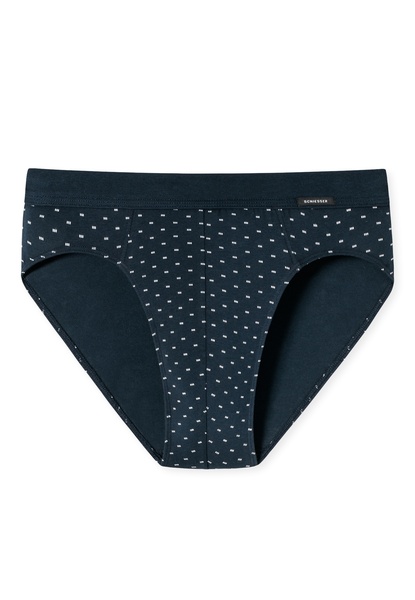 Dieser Herrenslip der Marke Schiesser verfügt über eine komfortable und bequeme Passform, die eine großzügige Bewegungsfreiheit bietet und angenehm zu tragen ist. Das Muster ist schlicht und für Jedermann geeignet. Er besitzt kein Beinstück, sondern endet unmittelbar unter der Leiste.