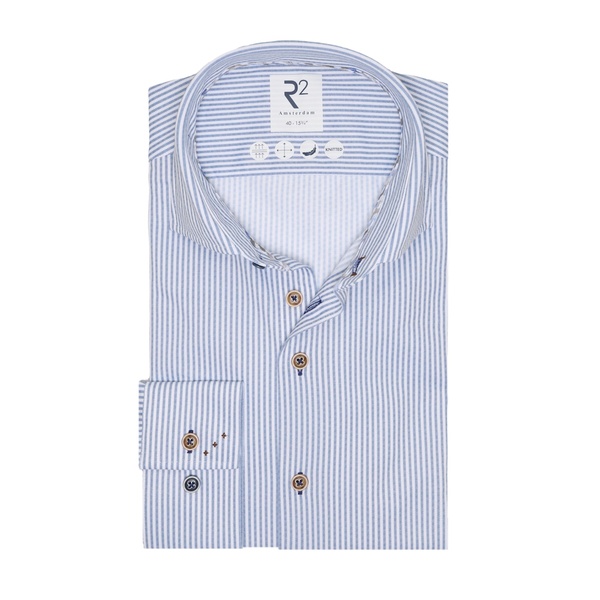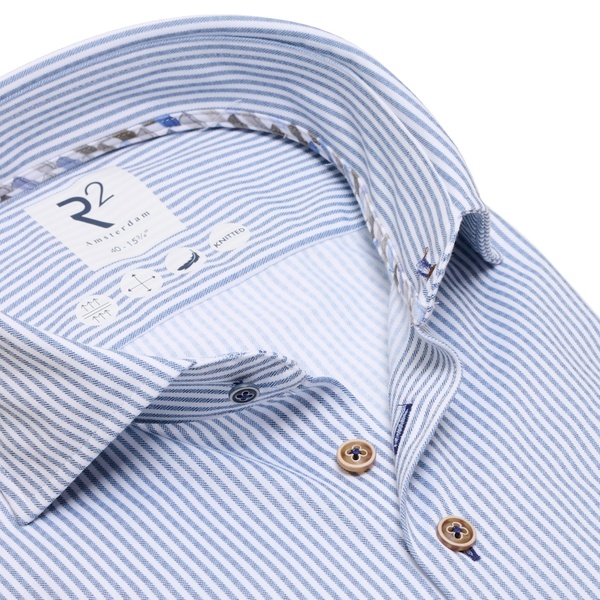 Es ist besonders bequem, da das Material dehnbar und weich ist. Dadurch passt es sich dem Körper besser an und ermöglicht mehr Bewegungsfreiheit als gewebte Hemden. Außerdem ist es pflegeleicht, knitterarm und atmungsaktiv. Es ist ideal für lange Tage oder Reisen. Optisch wirkt es zudem dank des minimalistischen Streifens sportlich-elegant und lässt sich vielseitig kombinieren.